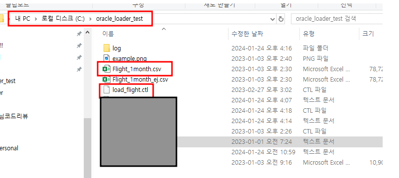 폴더에 로드에 필요한 csv파일과 ctl 파일과 log가 쌓일 log폴더 준비 후