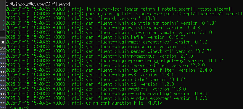 fluentd.host=localhost fluentd.port=242244. 관리자 권한으로 실행 후 fluentd 입력