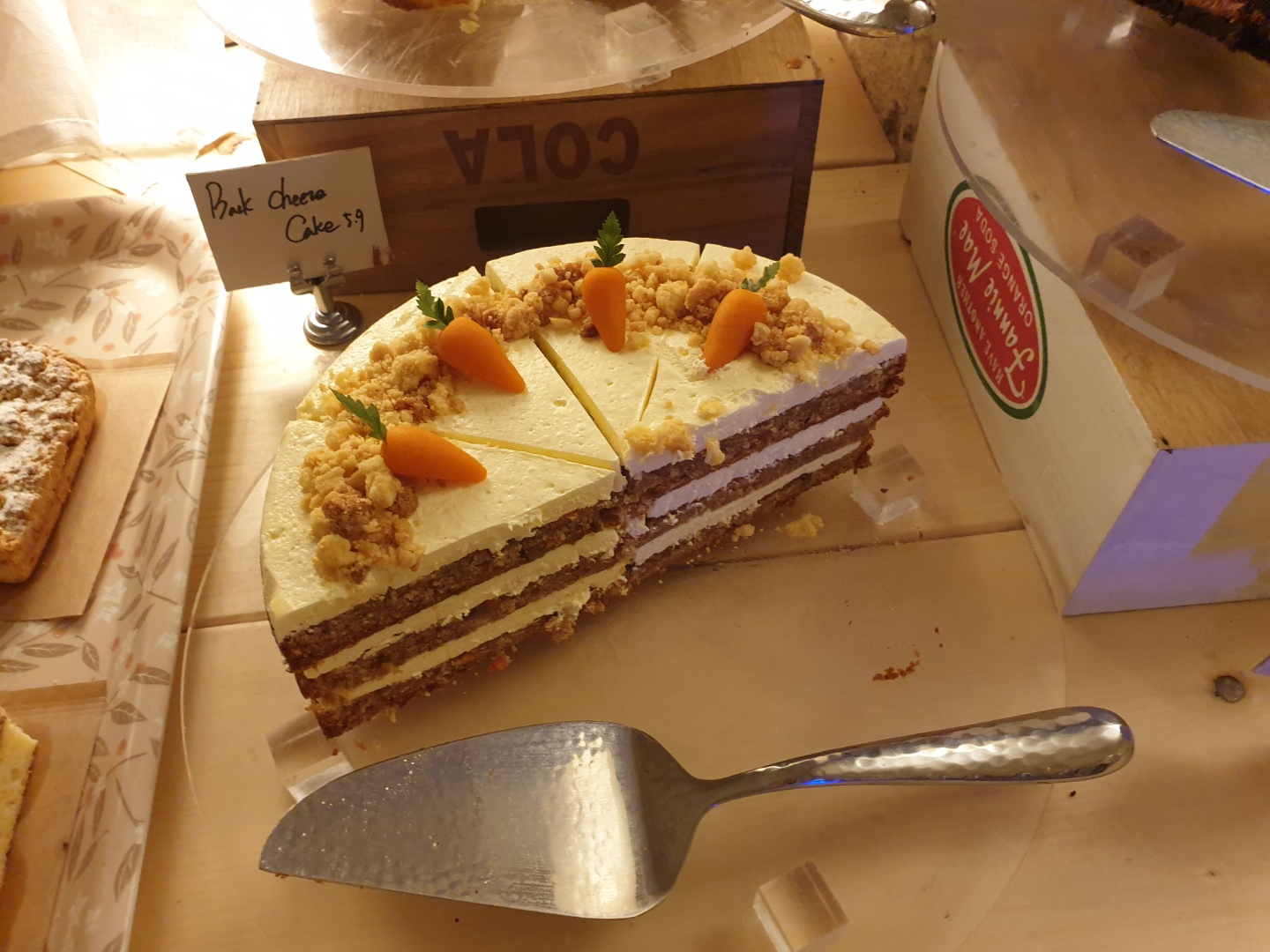 당근 케잌!!! 의자 2층에도 자리가 있다. 의자가 높아서 앉기 불편 카페 전경, (빵겉에는 굳힌 꿀(?), 속은 옥수수맛크림이 들어있었음