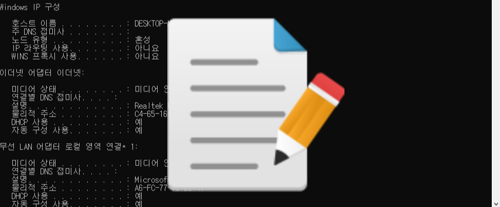 안녕하세요 cmd에서 여러가지 명령어를 사용합니다. java에서도 같은 결과를 가져오고 싶을때가 있습니다. 가령 mac주소라던지 ip주소라던지 네트워크정보등등... 오늘은 cmd에서 ipconfig -all 의 결과를 자바를 이용해서 가져오도록 하겠습니다.