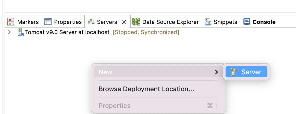 5. 서버 영역에서 오른쪽 마우스를 클릭합니다.