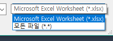 ^이렇게 형식이 Microsoft Excel Worksheet로 제한됩니다. 그런데 여기서 누군가가 하필이면