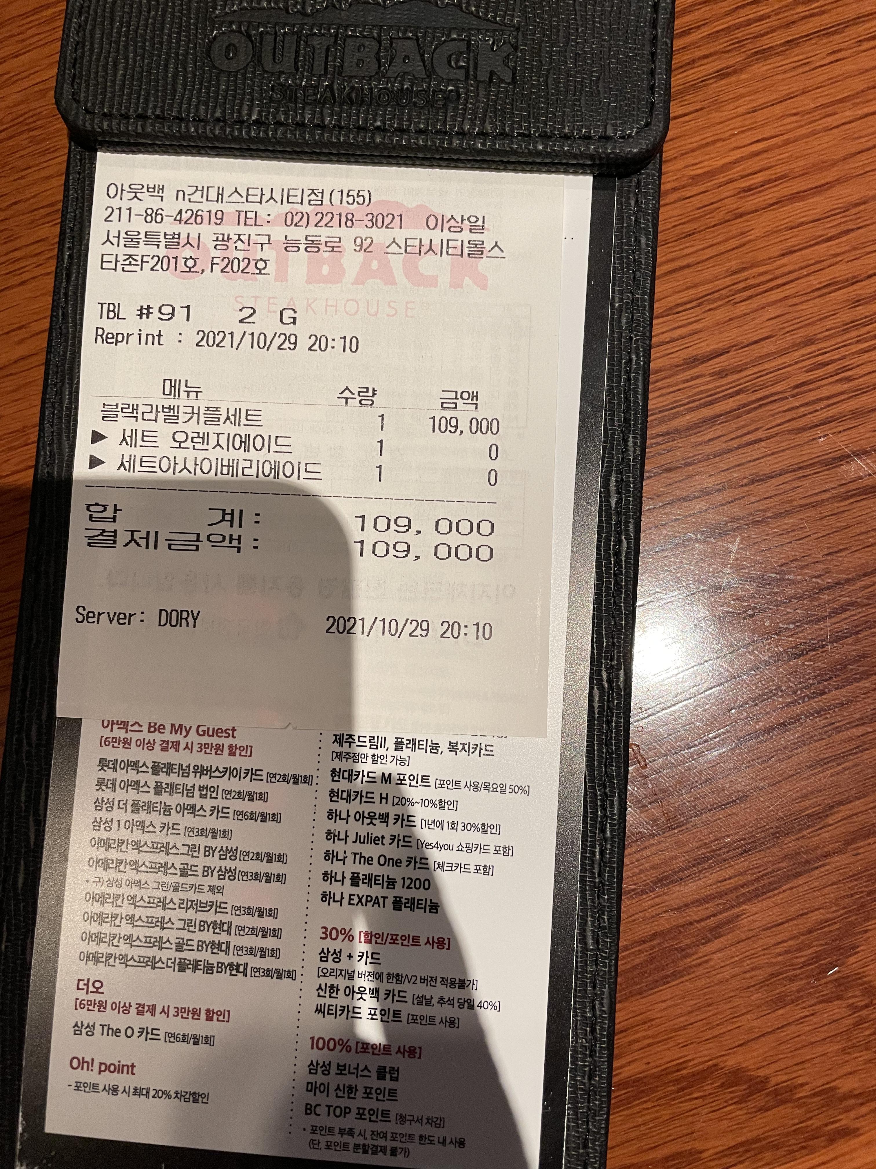 [리뷰]아웃백스테이크하우스 건대스타시티점, 건대 맛집REVIEW 2021. 11. 14. 16:14반응형
