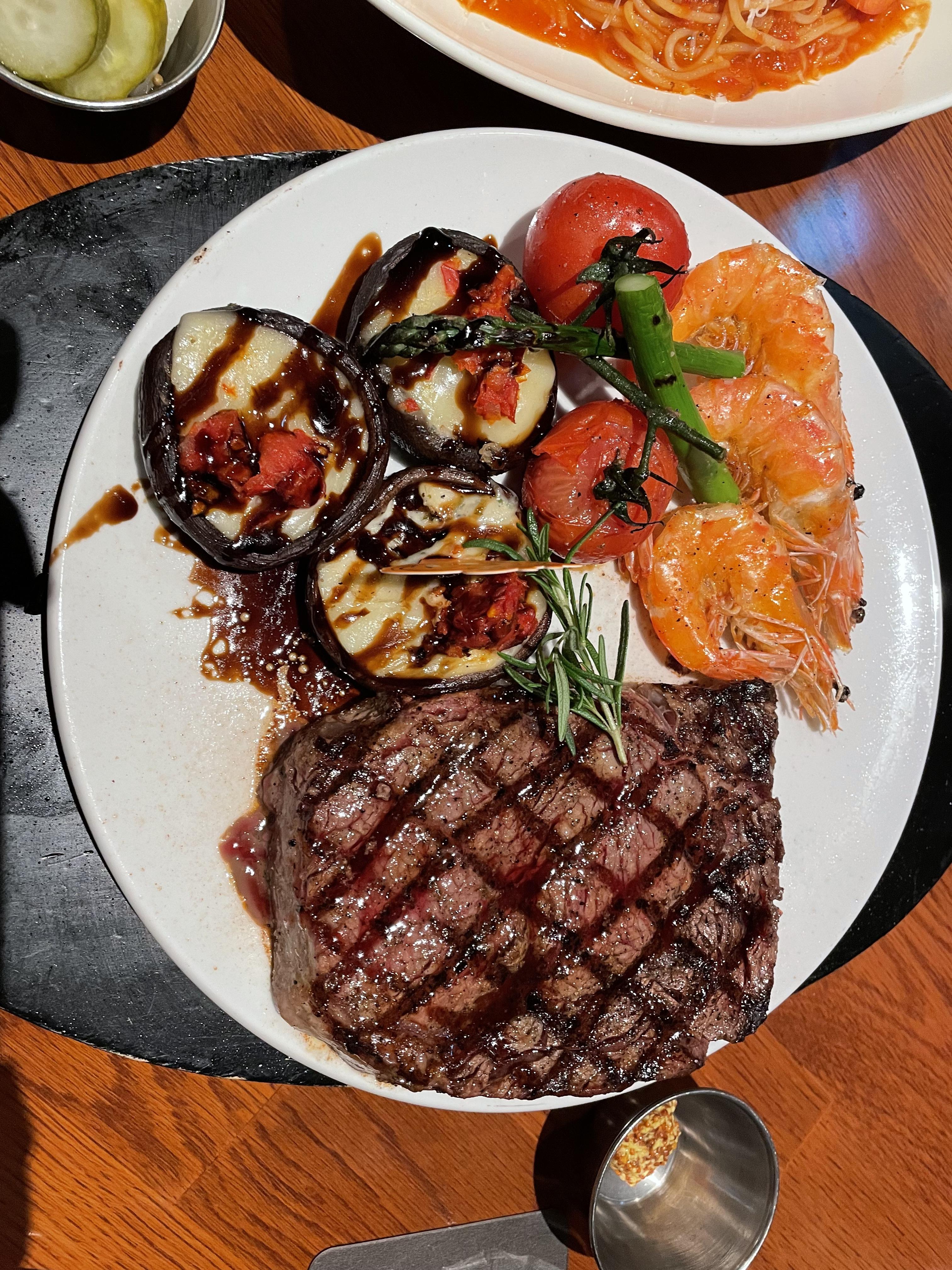 맛있는 새우~ 그리고 메인요리! 표고버섯 이랑 감자그라탕이랑 선택이였던것같은데 버섯 선택했고 너무 맛있었다!