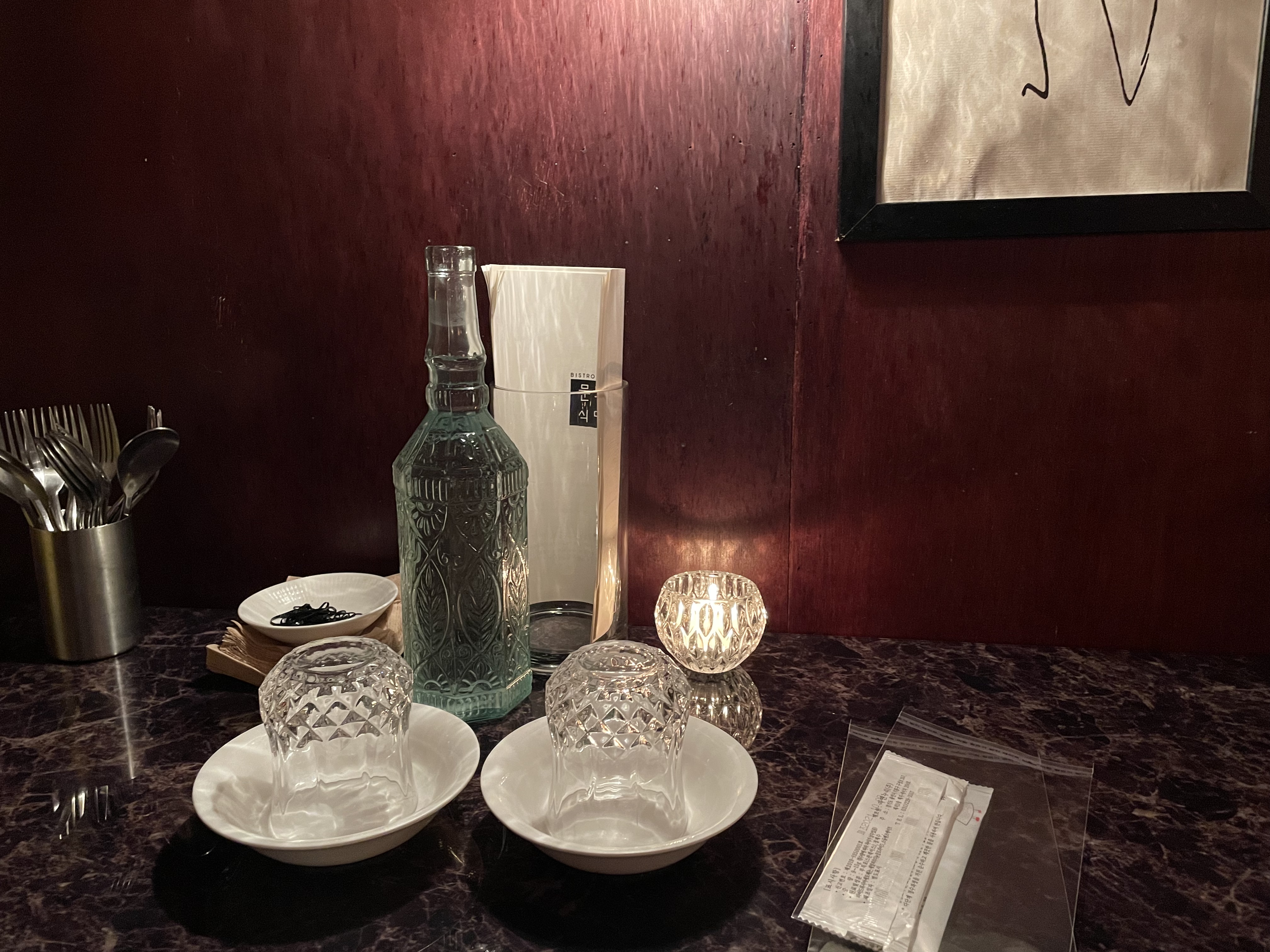 안에 굉장히 어두컴컴하고 뭔가 좁지만 분위기 있다. 그리고 테이블마다 사이가 가깝다. 딱 뭔가 데이트하기 좋은 분위기랄까~