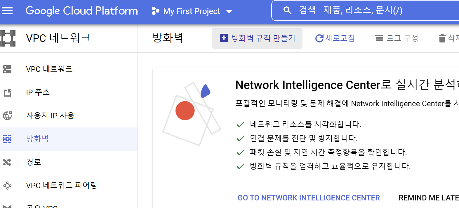 고정 ip 생성된다. 4.방화벽 규칙 변경하기