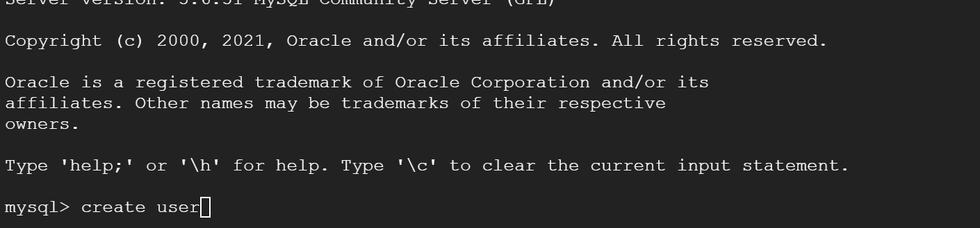 create user '사용자아이디'@'localhost' identified by '비밀번호';