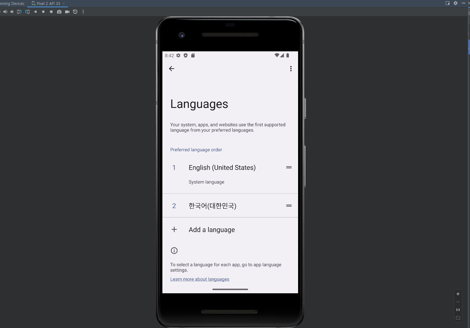 8. 거기서 system 들어가서 폰에서 한글설정하듯이 설정해준다.